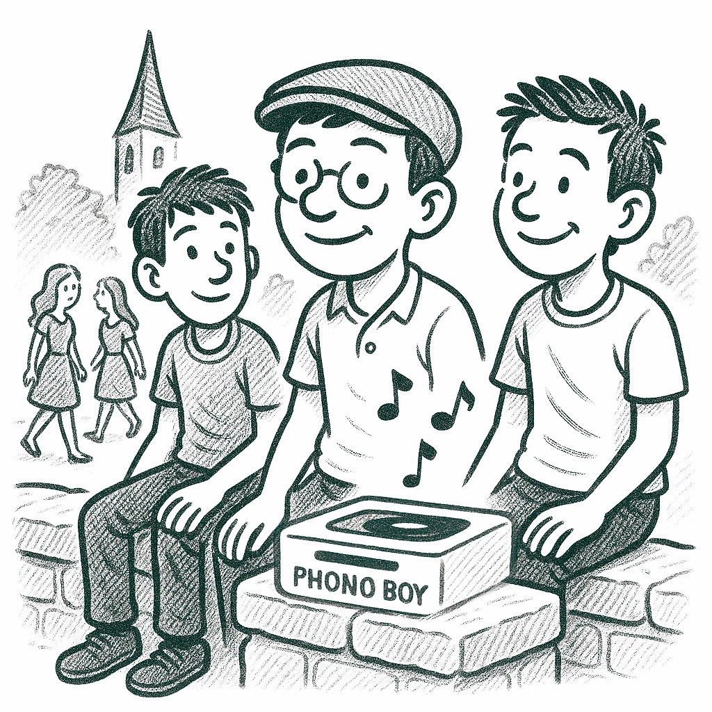 Einer von uns hatte seinen Schatz dabei: einen knallroten Phono Boy. Das war so ein tragbarer Plattenspieler, der Schallplatten nicht auflegte, sondern verschluckte. Man schob die Elvis-Single vorne hinein, und das Gerät fraß sie mit einem Geräusch, als würde es an einer Waffel nagen. Kurz darauf röhrte Elvis los, und wir fühlten uns wie die Könige.