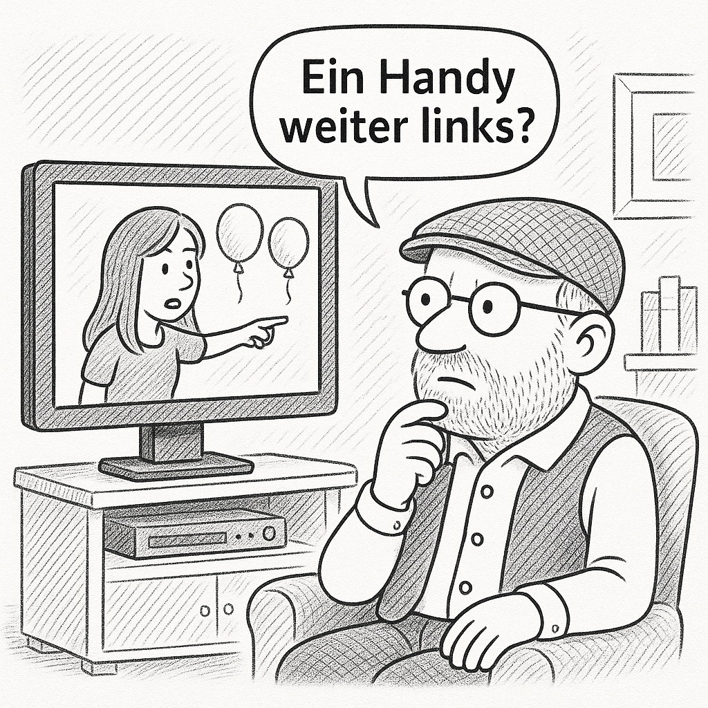 Heute: „Zweieinhalb Handys weiter, bitte.“