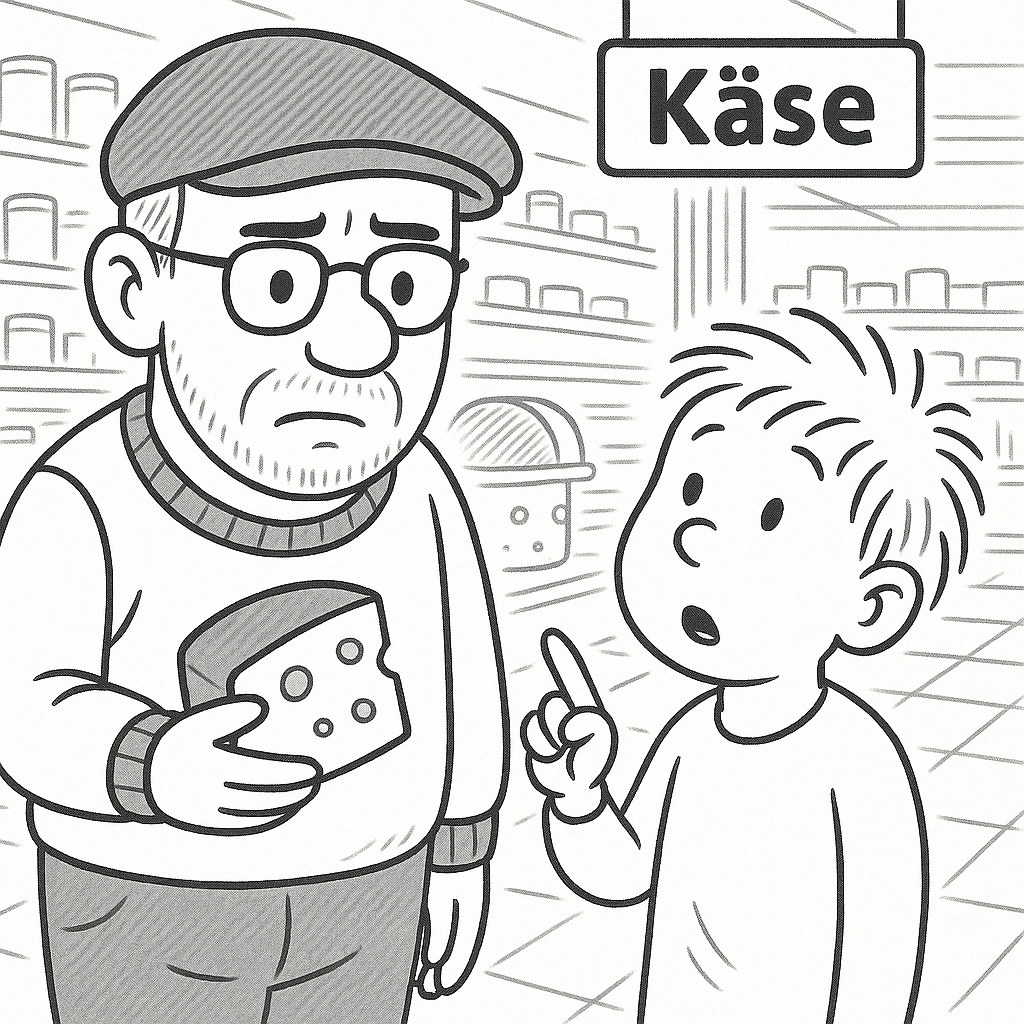 Ich stehe an der Käsetheke, Dienstagvormittag – umgeben von lauter gut Gereiften. Mich eingeschlossen. Na ja, ich bin achtzig, fühle mich aber nicht so. Vielleicht wie sechzig – oder wie ein erfahrener Fünfzigjähriger mit stabilem Innenleben und leichtem Kniaschwammerl (Kniezittern). Alles im Rahmen – bis ein kleiner Junge seine Mutter fragt, laut genug für die ganze Käsetheke: „Mama, warum trägt der Mann so eine alte Mütze?“